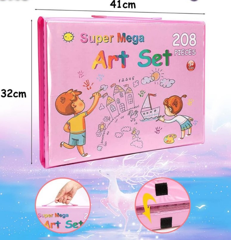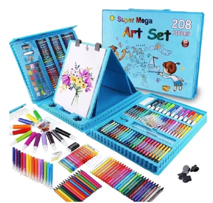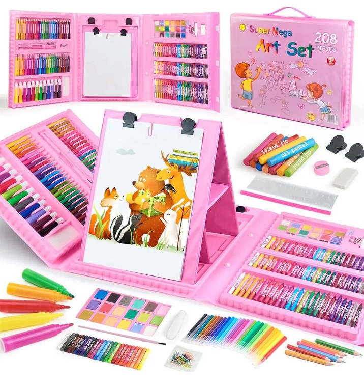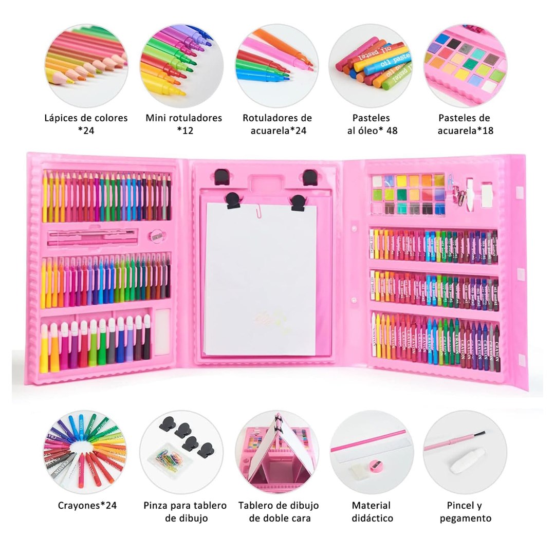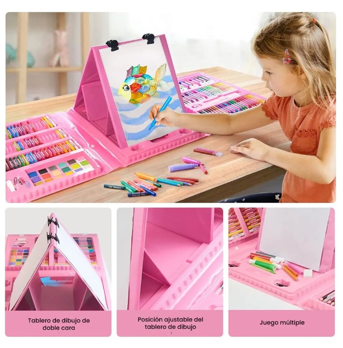 Este conjunto de lápices de colores es absolutamente increíble y cuenta con 208 piezas de dibujo para niños y suministros de pintura. Todos los materiales están preclasificados y perfectamente colocados en un estuche rosa único. Mantén a los más pequeños entretenidos y da rienda suelta a su creatividad. El set de dibujo infantil incluye incluso un caballete de doble cara que permite trabajar a dos artistas a la vez.